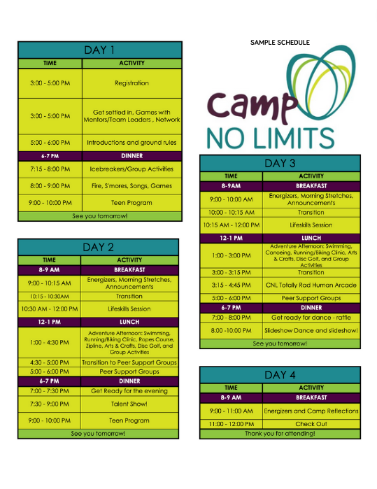 Check out the sample schedule - these days can be long and also pretty incredible! Please see the volunteer roles and expectations below to see if volunteering at Camp No Limits is a good fit for you.